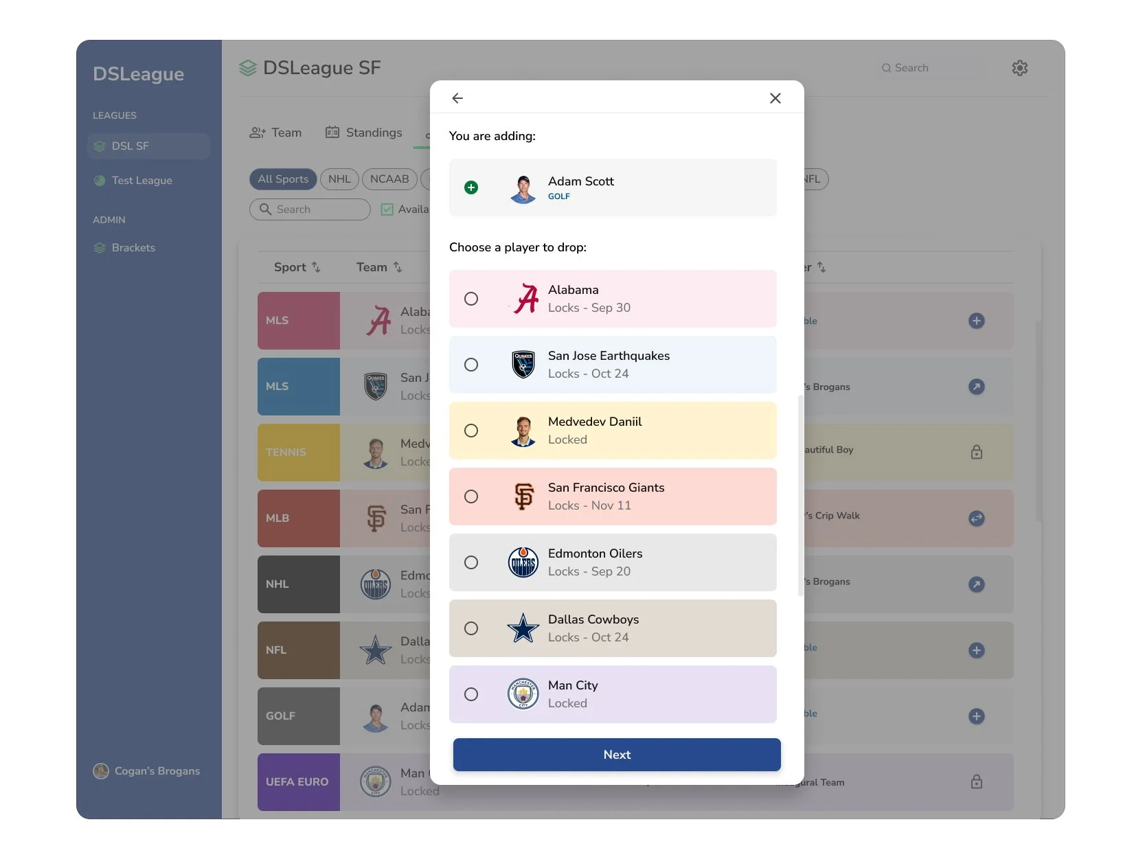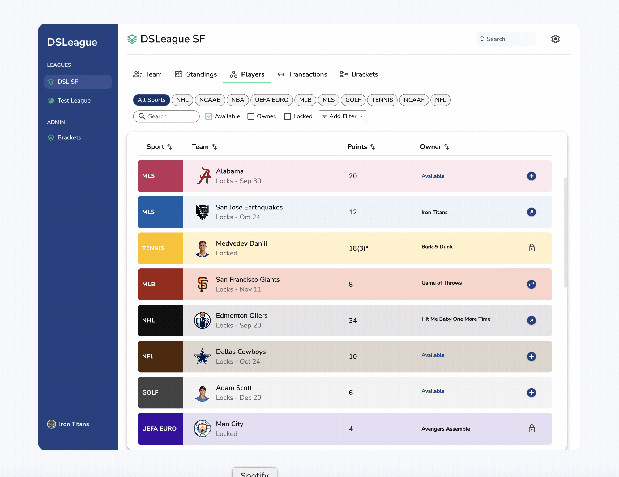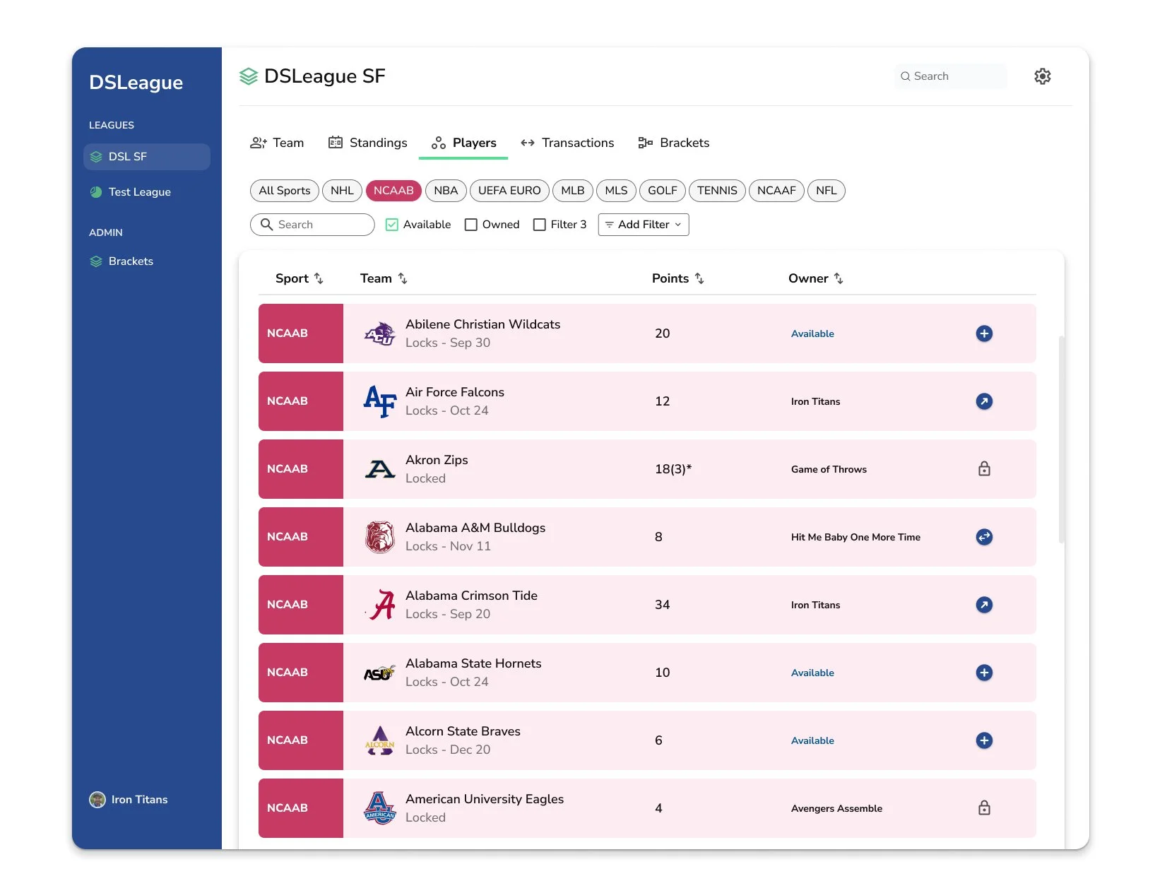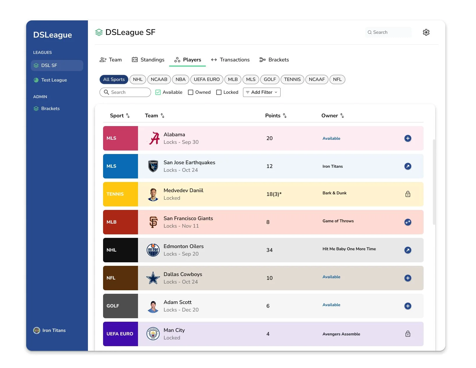 DSLeague (Decathlon Sports League) is a fantasy sports app, similar to fantasy football, except owners draft teams from 10 sports, rather than drafting players from a single sport. The league runs over the course of the entire year, so there’s always something going on!
